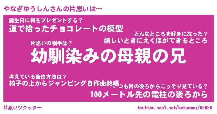 | 胡散臭い通販商品みたいなあだ名 | 『必ず成功するブレスレット…その名も「やなぎゆうしん」』 |