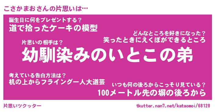 | 男性向けラノベタイトル風あだ名 | 『こさかまおの憂鬱』 |