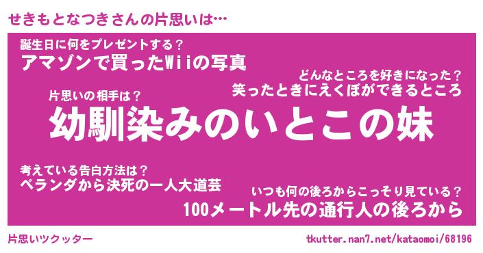 | 男性向けラノベタイトル風あだ名 | 『せきもとなつきの憂鬱』 |