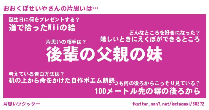 | ヘコむあだ名 | 『おおにゅー』『豆乳』『おおお』 |