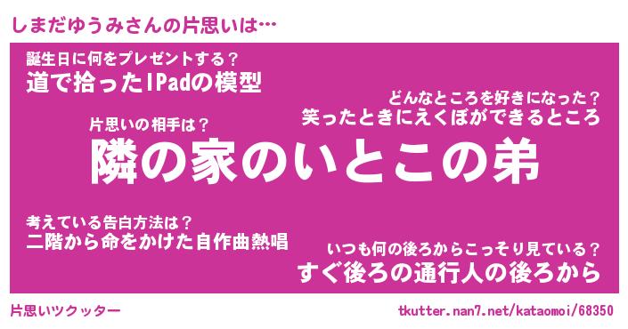 | 胡散臭い通販商品みたいなあだ名 | 『必ず成功する霊験あらたかなお札…その名も「しまだゆうみ」』 |
