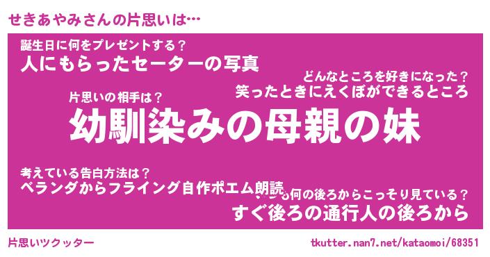 | 胡散臭い通販商品みたいなあだ名 | 『必ず成功するブレスレット…その名も「せきあやみ」』 |