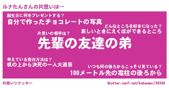 | ヘコむあだ名 | 『ルナっふぃ~』『つくし』 |