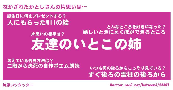 | 女子向けラノベタイトル風あだ名 | 『誰かこのなかざわたかとしを説明してください! ~契約から始まるウェディング~』 |