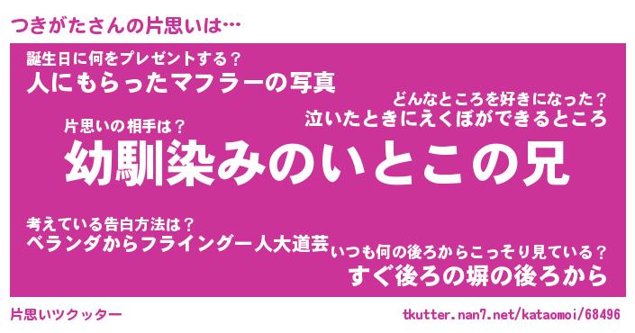 | 男性向けラノベタイトル風あだ名 | 『つきがたの憂鬱』 |