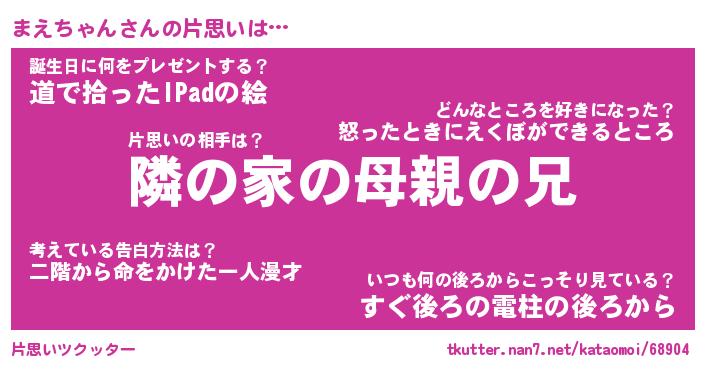 | 胡散臭い通販商品みたいなあだ名 | 『必ず成功するブレスレット…その名も「まえちゃん」』 |