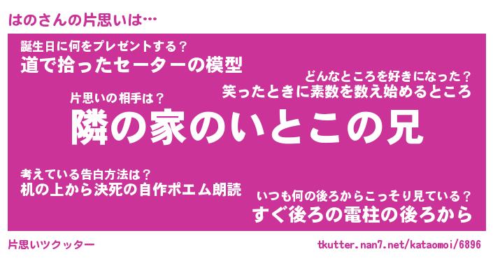 | ヘコむあだ名 | 『はのにゅー』『豆乳』『はのっ子』 |