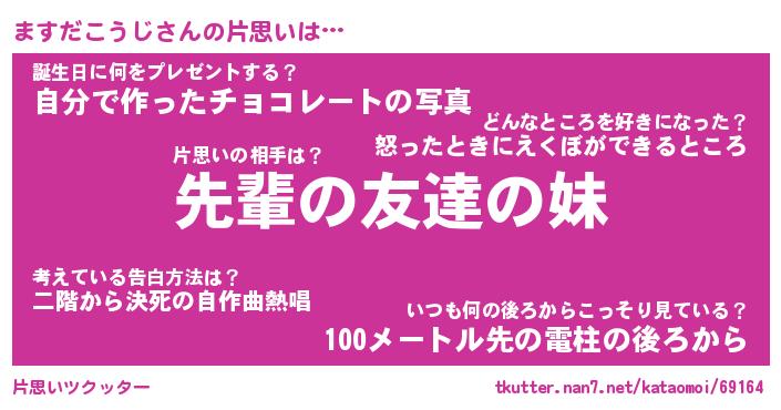 | ヘコむあだ名 | 『ますっふぃ~』『つくし』 |