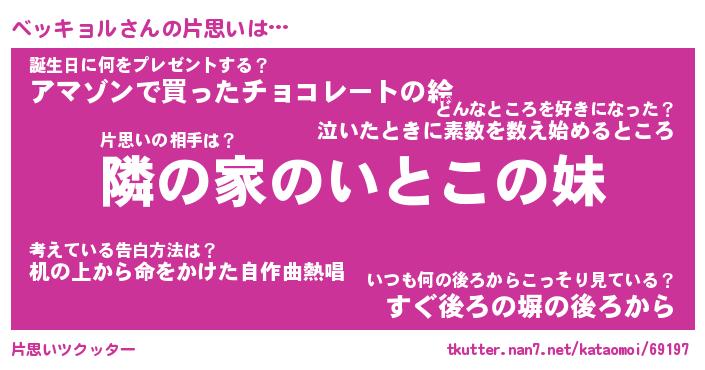| 男性向けラノベタイトル風あだ名 | 『ベッキョルの憂鬱』 |