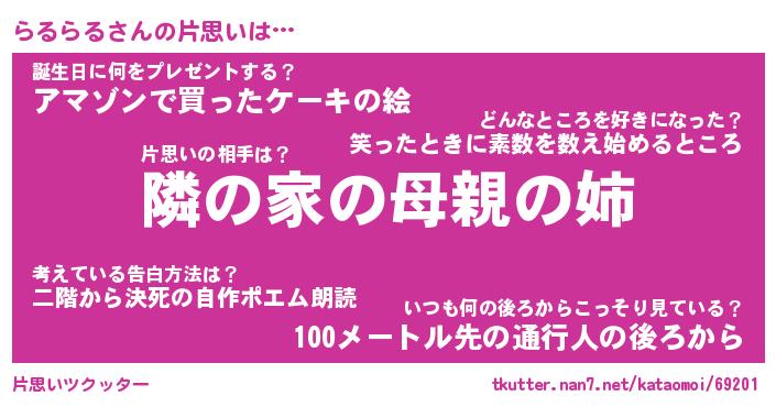 | 意味不明あだ名 | 『ペロリンらるらる』『永久保存らるらる』 |