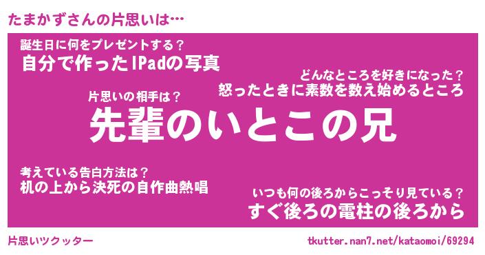 | ヒーロー風カッコイイあだ名 | 『スーパータマカズ』『炎刃騎士タマ』 |
