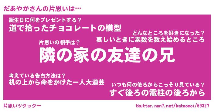| 胡散臭い通販商品みたいなあだ名 | 『モテモテ間違いなし霊験あらたかなお札…その名も「だあやか」』 |