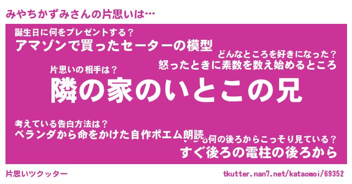 | ヘコむあだ名 | 『みやもー』『酢こんぶ』『みやを』 |