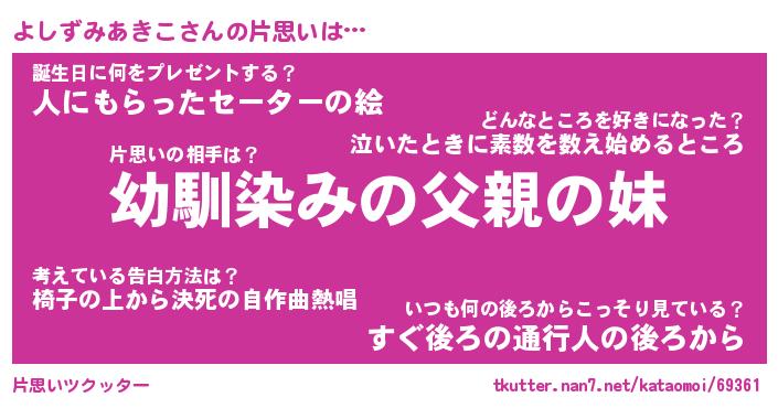 | 恥ずかしいあだ名 | 『プリティーよしずみあきこ』『よしちん』 |