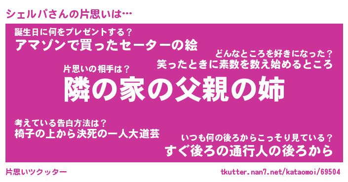 | 男性向けラノベタイトル風あだ名 | 『シェルパの憂鬱』 |