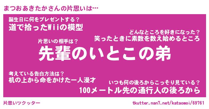 | 胡散臭い通販商品みたいなあだ名 | 『モテモテ間違いなし水晶球…その名も「まつおあきたか」』 |