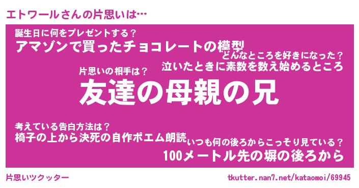 | ヘコむあだ名 | 『エトにー』『なまこ酢』『エト太郎』 |