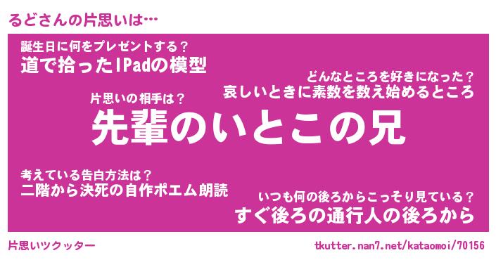 | ヘコむあだ名 | 『るどもー』『豆乳』『るどっぺ』 |