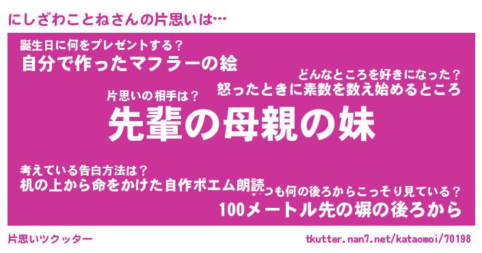 | 恥ずかしいあだ名 | 『プリティーにしざわことね』『にしちん』 |