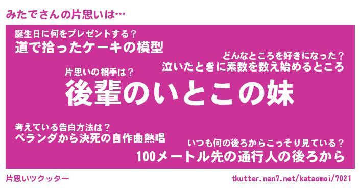 | ツイッター | みたでさんのツイッターID『dendenmushi_kun』 |