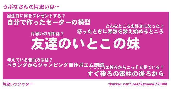 | 2回繰り返すあだ名 | 『うぶうぶ』『ううぶぶ』『ぬれぬれ』 |