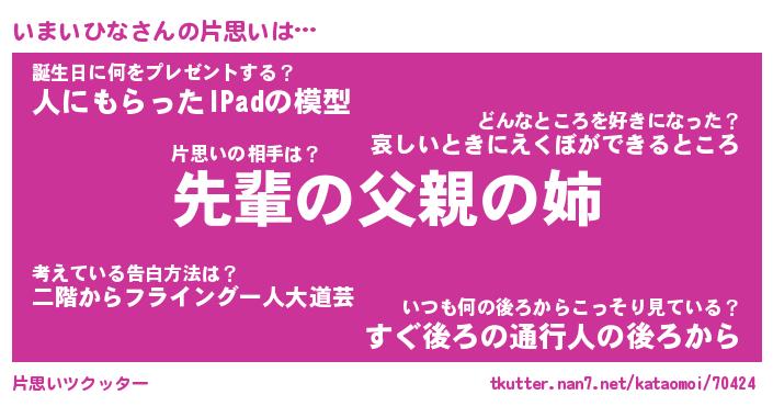 | 胡散臭い通販商品みたいなあだ名 | 『モテモテ間違いなし水晶球…その名も「いまいひな」』 |