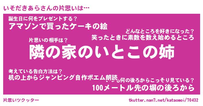 | 胡散臭い通販商品みたいなあだ名 | 『モテモテ間違いなし霊験あらたかなお札…その名も「いそだきあら」』 |