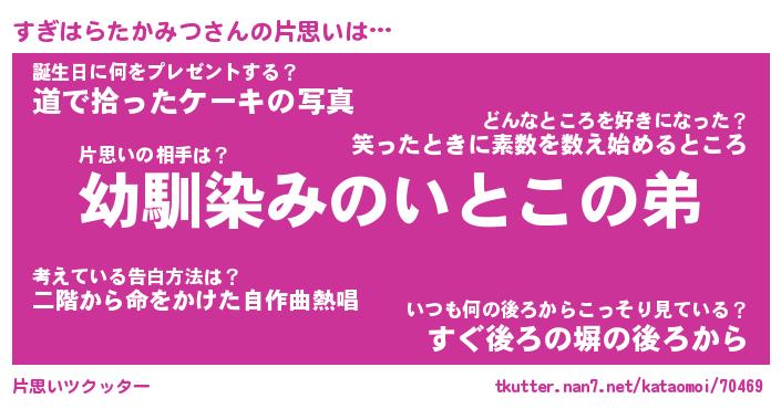 | ヘコむあだ名 | 『すぎにゅー』『牛乳』『すぎぷりん』 |