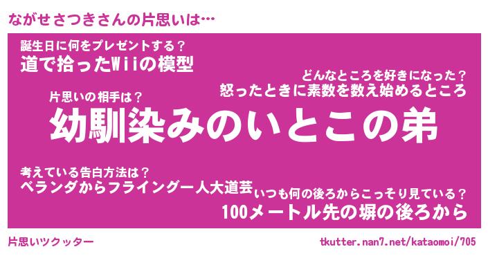 | 女子向けラノベタイトル風あだ名 | 『(仮)ながせさつきのやんごとなき事情』 |