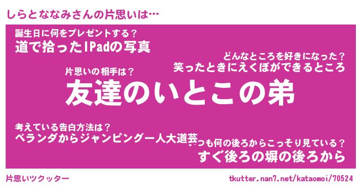 | ヒーロー風カッコイイあだ名 | 『スーパーシラトナナミ』『炎刃騎士シラ』 |