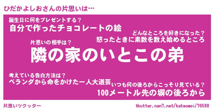 | ヒーロー風カッコイイあだ名 | 『スーパーヒダカヨシオ』『炎刃騎士ヒダ』 |