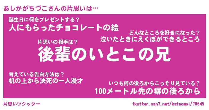 | ヘコむあだ名 | 『あしもー』『つくし』『あしっ子』 |