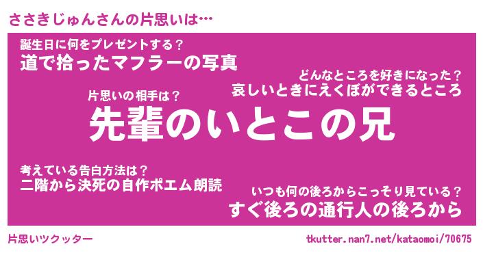 | 男性向けラノベタイトル風あだ名 | 『ささきじゅんの憂鬱』 |