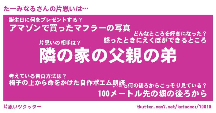 | 胡散臭い通販商品みたいなあだ名 | 『モテモテ間違いなし水晶球…その名も「たーみなる」』 |