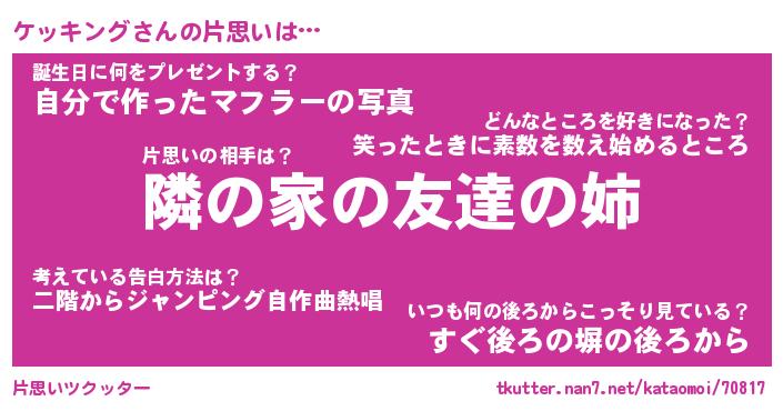 | ヘコむあだ名 | 『ケッもー』『つくし』『ケッっちょ』 |