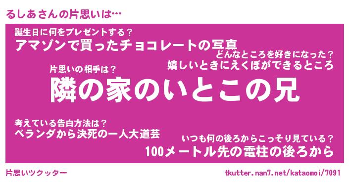 | ヘコむあだ名 | 『るしにゅー』『豆乳』『るしを』 |