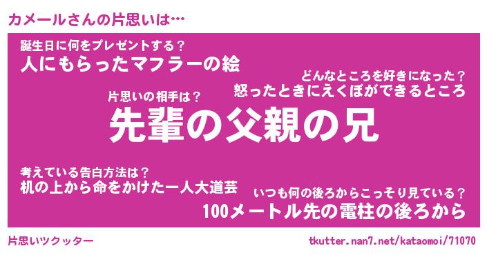 | 意味不明あだ名 | 『ペロリンカメール』『永久保存カメール』 |