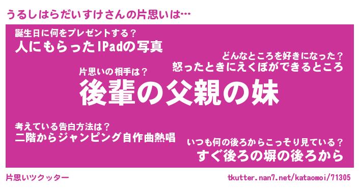 | 胡散臭い通販商品みたいなあだ名 | 『億万長者になれる水晶球…その名も「うるしはらだいすけ」』 |