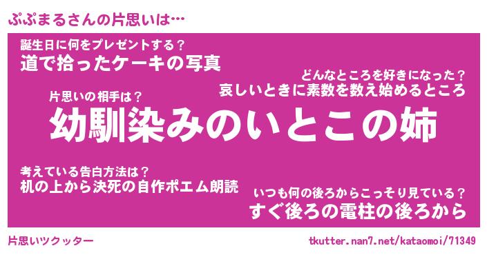 | 男性向けラノベタイトル風あだ名 | 『ぷぷまるの憂鬱』 |