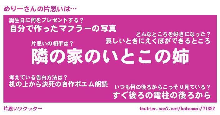 | ヘコむあだ名 | 『めりもー』『豆乳』『めりを』 |
