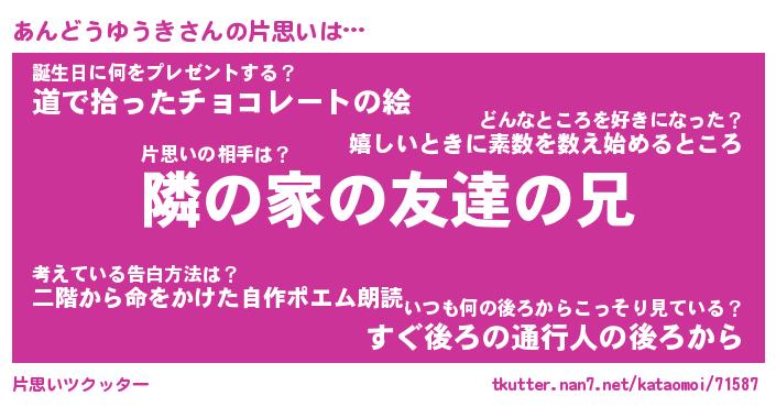 | 男性向けラノベタイトル風あだ名 | 『あんどうゆうきの憂鬱』 |