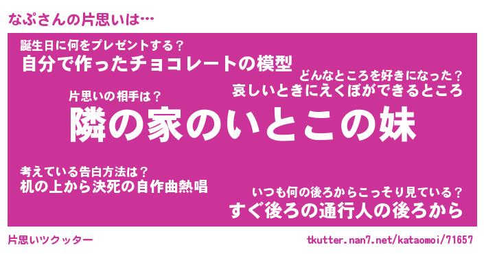 | ヘコむあだ名 | 『なぷもー』『つくし』『なぷぷりん』 |