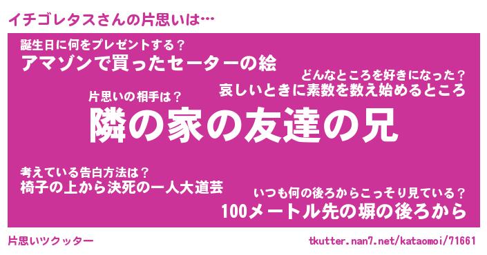 | ヒーロー風カッコイイあだ名 | 『スーパーイチゴレタス』『炎刃騎士イチ』 |