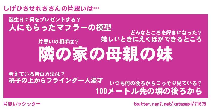 | ヘコむあだ名 | 『しげにー』『レバニラ』『しげ太郎』 |