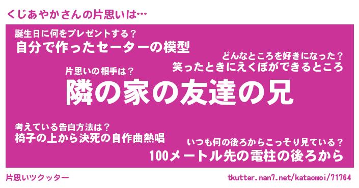 | 男性向けラノベタイトル風あだ名 | 『くじあやかの憂鬱』 |