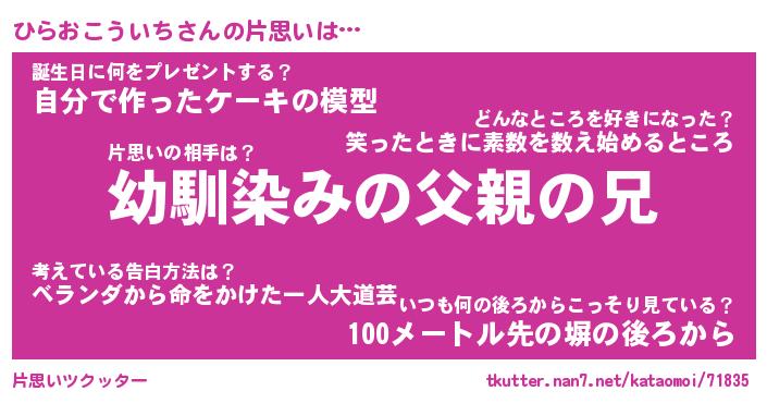 | 女子向けラノベタイトル風あだ名 | 『(仮)ひらおこういちのやんごとなき事情』 |