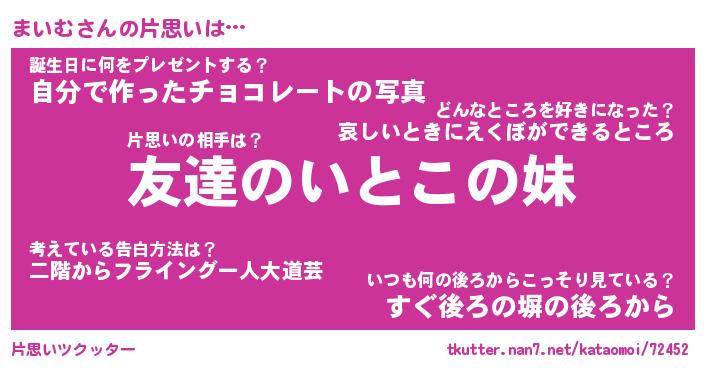 | 意味不明あだ名 | 『ペロリンまいむ』『まいむフォーエバー』 |