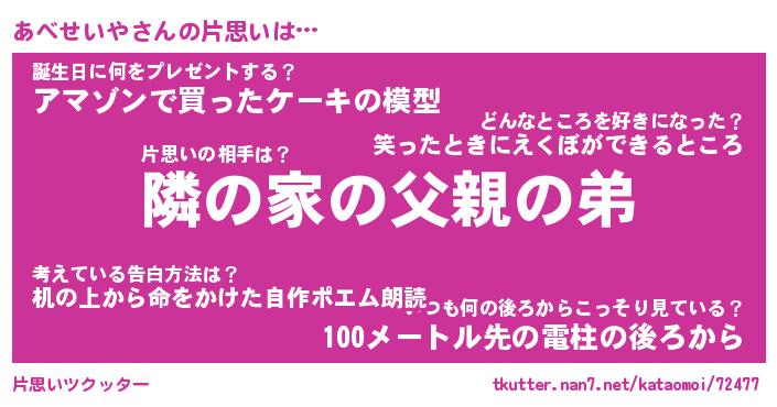 | っっっっっっっw …「あべせいた」 | 3月04日 01:50 |
