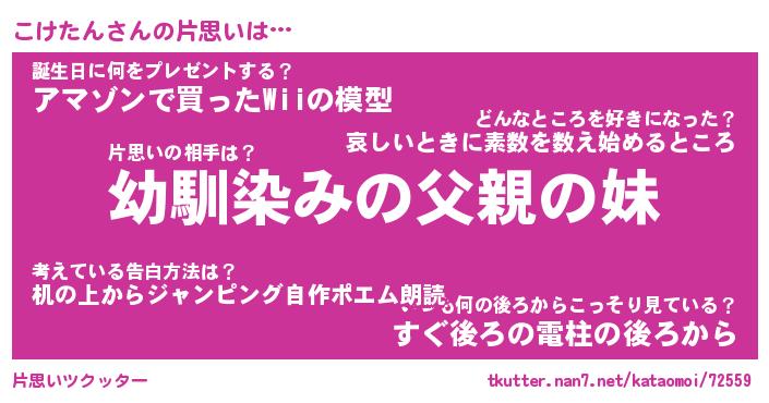 | ヘコむあだ名 | 『こけふぇ~』『牛乳』『こけを』 |