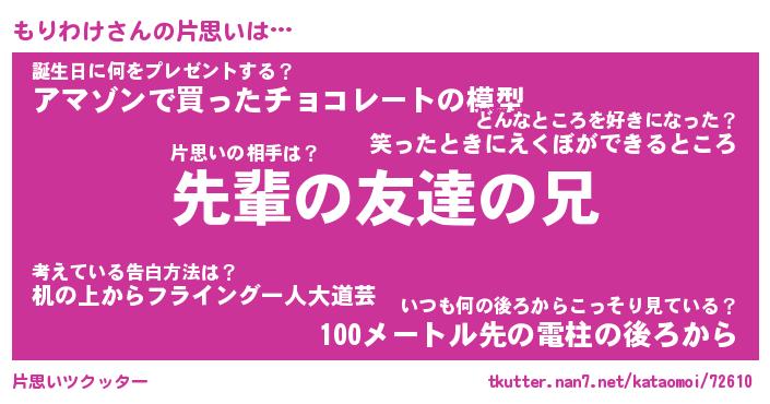 | 胡散臭い通販商品みたいなあだ名 | 『モテモテ間違いなし霊験あらたかなお札…その名も「もりわけ」』 |